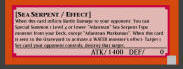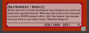 | Comments: | His first effect does include himself being a Sea Serpent but he lacks any DEF and can't add any copies of himself to your hand when destroyed by a card effect. |