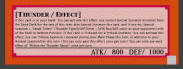 | Card info: | Zaborg the Thunder Monarch LIGHT / Thunder / Level 5 / ATK 2400 / DEF 1000 If this card is Tribute Summoned: Target 1 monster on the field; destroy that target. COMMON |