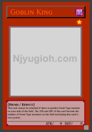 Goblin King DARK / Fiend / Level 1 / ATK 0 / DEF 0 This card cannot be attacked if there is another Fiend-Type monster on your side of the field. The ATK and DEF of this card become the number of Fiend-Type monsters on the field (excluding this card) x 1000 points. ULTRA RARE |