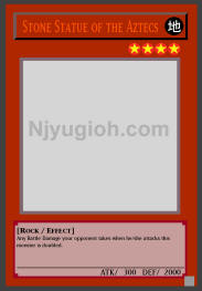 Stone Statue of the Aztecs EARTH / Rock / Level 4 / ATK 300 / DEF 2000 Any Battle Damage your opponent takes when he/she attacks this monster is doubled. ULTRA RARE |