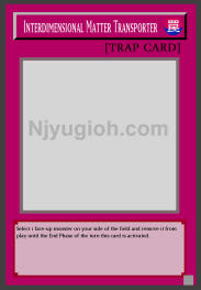 Interdimensional Matter Transporter Normal Trap Select 1 face-up monster on your side of the field and remove it from play until the End Phase of the turn this card is activated. SUPER RARE |