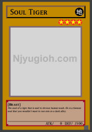 Soul Tiger EARTH / Beast / Level 4 / ATK 0 / DEF 2100 The soul of a tiger that is said to devour human souls. He is a famous soul that you wouldn't want to run into in a dark alley. SUPER RARE |