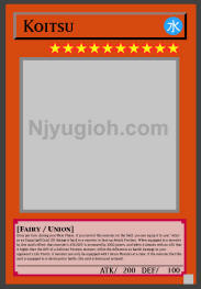 Koitsu WATER / Fairy-Type Union / Level 10 / ATK 200 / DEF 100 Once per turn, during your Main Phase, if you control this monster on the field, you can equip it to your "Aitsu" as an Equip Spell Card, OR change it back to a monster in face-up Attack Position. When equipped to a monster by this card's effect, that monster's ATK/DEF is increased by 3000 points, and when it attacks with an ATK that is higher than the DEF of a Defense Position monster, inflict the difference as Battle Damage to your opponent's Life Points. (1 monster can only be equipped with 1 Union Monster at a time. If the monster that this card is equipped to is destroyed in battle, this card is destroyed instead). COMMON |