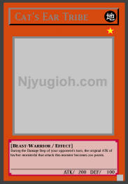 Cat's Ear Tribe EARTH / Beast-Warrior / Level 1 / ATK 200 / DEF 100 During the Damage Step of your opponent's turn, the original ATK of his/her monster(s) that attack this monster becomes 200 points. RARE |