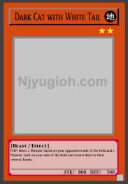 Dark Cat with White Tail EARTH / Beast / Level 2 / ATK 800 / DEF 500 FLIP: Select 2 Monster Cards on your opponent's side of the field and 1 Monster Card on your side of the field and return them to their owners' hands. COMMON |