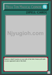 Mega Ton Magical Cannon Normal Spell Remove 10 Spell Counters on your side of the field. Destroy all cards on your opponent's side of the field. RARE |