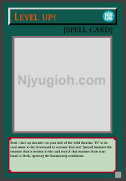 Level up! Normal Spell Send 1 face-up monster on your side of the field that has "LV" in its card name to the Graveyard to activate this card. Special Summon the monster that is written in the card text of that monster from your hand or Deck, ignoring the Summoning conditions. ULTRA RARE |