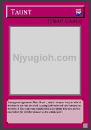 Taunt Normal Trap During your opponent's Main Phase 1, select 1 monster on your side of the field to activate this card. As long as the selected card remains on the field, if your opponent attacks with a monster(s) this turn, he/she must select the selected monster as the attack target. SUPER RARE |