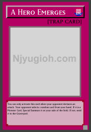 A Hero Emerges Normal Trap You can only activate this card when your opponent declares an attack. Your opponent selects 1 random card from your hand. If it is a Monster Card, Special Summon it on your side of the field. If not, send it to the Graveyard. SUPER RARE |