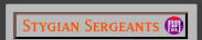 Stygian Sergeants DARK / Fiend-Type Synchro / Level 5 / ATK 2200 / DEF 1800 1 Fiend-Type Tuner + 1 or more non-Tuner monsters When this card destroys an opponent's monster by battle and sends it to the Graveyard, it can gain 800 ATK (until the end of the Battle Phase) and attack once again in a row. ULTRA RARE |