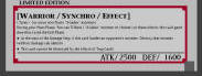 | Comments: | He's very Synchro Material specific and has some pretty strict TOS, not to mention his number of attacks isn't a guaranteed number. The benefits he has just aren't enough IMO to make him a playable card. |