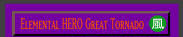 Elemental HERO Great Tornado WIND / Warrior-Type Fusion / Level 8 / ATK 2800 / DEF 2200 1 "Elemental HERO" monster + 1 WIND monster Must be Fusion Summoned and cannot be Special Summoned by other ways. When this card is Fusion Summoned: Halve the ATK and DEF of all face-up monsters your opponent controls. ULTRA RARE |