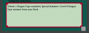 | Comments: | Well better SJ magazine than as a card you can pull from a pack because this one is beyond terrible. You could use it with Prime Material Dragon but relying on one card is bad. |