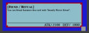 Fiend's Mirror DARK / Fiend-Type Ritual / Level 6 / ATK 2100 / DEF 1800 You can Ritual Summon this card with "Beastly Mirror Ritual". SUPER RARE |