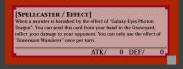 | Comments: | So he's got a built-in, one-sided Ring of Destruction but can only target face up monsters and even if he hits your opponent's last monster, he can't attack directly that turn. |