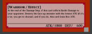 | Comments: | Although he starts off at a decent 1800 ATK, he gets weaker each time his unrestricted Fissure effect is triggered, which isn't optional. |
