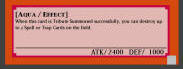 | Comments: | Don't waste your time with this card. Stats of (1400/1200) aren't worth removing 2 WATER Monsters and plus, he may not get to use his effect! |