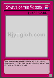 Statue of the Wicked Normal Trap When this face-down card is destroyed and sent to the Graveyard, Special Summon 1 "Wicked Token" (Fiend-Type/DARK/4 Stars/ATK 1000/DEF 1000) on your side of the field. SUPER RARE |