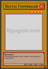 Battle Footballer FIRE / Machine / Level 4 / ATK 1000 / DEF 2100 A cyborg with high defense power. Originally it was invented for a football machine. SUPER RARE |