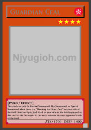Guardian Ceal FIRE / Pyro / Level 4 / ATK 1700 / DEF 1400 This card can only be Normal Summoned, Flip Summoned, or Special Summoned when there is a "Shooting Star Bow - Ceal" on your side of the field. Send an Equip Spell Card on your side of the field equipped to this card to the Graveyard to destroy 1 monster on your opponent's side of the field. RARE |