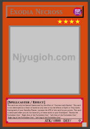 Exodia Necross DARK / Spellcaster / Level 4 / ATK 1800 / DEF 0 This card can only be Special Summoned by the effect of "Contract with Exodia". This card is not destroyed as a result of battle at any time or by the effects of Spell or Trap Cards. During each of your Standby Phases, increase the ATK of this card by 500 points. This card is destroyed when you do not have all 5 of these cards in your Graveyard: "Exodia the Forbidden One", "Right Arm of the Forbidden One", "Left Arm of the Forbidden One", "Right Leg of the Forbidden One", "Left Leg of the Forbidden One". RARE |
