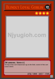 Blindly Loyal Goblin EARTH / Warrior / Level 4 / ATK 1800 / DEF 1500 As long as this card remains face-up on the field, control of this card cannot switch. ULTRA RARE |