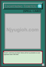 Lightning Vortex Normal Spell Discard 1 card from your hand. Destroy all face-up monsters on your opponent's side of the field. RARE |