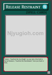 Release Restraint Normal Spell Tribute 1 "Gearfried the Iron Knight" on your side of the field to Special Summon 1 "Gearfried the Swordmaster" from your hand or Deck. SUPER RARE |