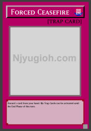 Forced Ceasefire Normal Trap Discard 1 card from your hand. No Trap Cards can be activated until the End Phase of this turn. SUPER RARE |