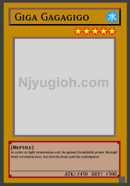 Giga Gagagigo WATER / Reptile / Level 5 / ATK 2450 / DEF 1500 In order to fight tremendous evil, he gained formidable power through body reconstruction, but lost his heart and his redemption. SUPER RARE |
