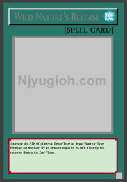 Wild Nature's Release Normal Spell Increase the ATK of 1 face-up Beast-Type or Beast-Warrior-Type Monster on the field by an amount equal to its DEF. Destroy the monster during the End Phase. RARE |