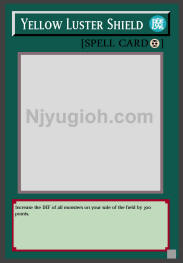 Yellow Luster Shield Continuous Spell Increase the DEF of all monsters on your side of the field by 300 points. SUPER RARE |