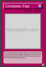 Covering Fire Normal Trap If your opponent's monster attacks a monster on your side of the field, you can activate this card during the Damage Step. Increase the ATK of your attacked monster by the ATK of 1 other face-up monster on your side of the field during the Damage Step. SUPER RARE |