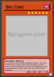 Big Core DARK / Machine / Level 6 / ATK 2300 / DEF 1100 Put 3 counters on this card when you Normal Summon it. This card is not destroyed as a result of battle. If this card battles a monster, remove 1 counter from this card at the end of the Damage Step. If this card battles without a counter, destroy this card at the end of the Damage Step. COMMON |