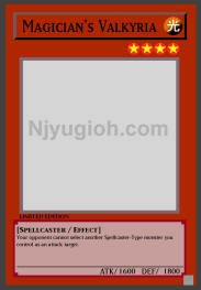 Magician's Valkyria LIGHT / Spellcaster / Level 4 / ATK 1600 / DEF 1800 Your opponent cannot select another Spellcaster-Type monster you control as an attack target. SUPER RARE |