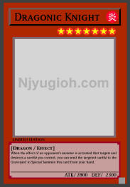 Dragonic Knight FIRE / Dragon / Level 7 / ATK 2800 / DEF 2300 When the effect of an opponent's monster is activated that targets and destroys a card(s) you control, you can send the targeted card(s) to the Graveyard to Special Summon this card from your hand. SUPER RARE |