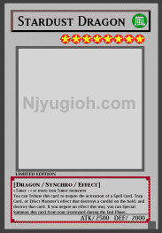 artwork) WIND / Dragon-Type Synchro / Level 8 / ATK 2500 / DEF 2000 1 Tuner + 1 or more non-Tuner monsters You can Tribute this card to negate the activation of a Spell Card, Trap Card, or Effect Monster's effect that destroys a card(s) on the field, and destroy that card. If you negate an effect this way, you can Special Summon this card from your Graveyard during the End Phase. SUPER RARE |