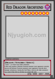 Red Dragon Archfiend DARK / Dragon-Type Synchro / Level 8 / ATK 3000 / DEF 2000 1 Tuner + 1 or more non-Tuner monsters If this card attacks a Defense Position monster your opponent controls, destroy all Defense Position monsters your opponent controls after damage calculation. During the End Phase, destroy all other monsters you control that did not declare an attack this turn. SUPER RARE |