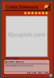 Cyber Dinosaur LIGHT / Machine / Level 7 / ATK 2500 / DEF 1900 When your opponent Special Summons a monster from their hand, you can Special Summon this card from your hand. SUPER RARE |