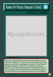 Force Normal Spell Target 1 face-up Xyz Monster you control; Special Summon from your Extra Deck, 1 "Number C" or "CXyz" monster with the same Type as that monster you control but 1 Rank higher, by using it as the Xyz Material. (This Special Summon is treated as an Xyz Summon. Xyz Materials attached to it also become Xyz Materials on the Summoned monster.) Then, if possible, detach 1 Xyz Material from a monster your opponent controls and attach it to the Summoned monster as an Xyz Material. SUPER RARE |