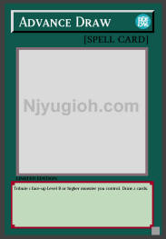 Advance Draw Normal Spell Tribute 1 face-up Level 8 or higher monster you control. Draw 2 cards. SUPER RARE |