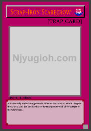 Scrap-Iron Scarecrow Normal Trap Activate only when an opponent's monster declares an attack. Negate the attack, and Set this card face-down again instead of sending it to the Graveyard. ULTRA RARE |