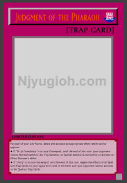 Judgment of the Pharaoh Normal Trap Pay half of your Life Points. Select and activate an appropriate effect which can be applied: ● If "Yu-Jo Friendship" is in your Graveyard, until the end of this turn: your opponent cannot Normal Summon, Set, Flip Summon, or Special Summon a monster(s) or activate an Effect Monster's effect. ● If "Unity" is in your Graveyard, until the end of this turn: negate the effects of all Spell and Trap Cards on your opponent's side of the field, and your opponent cannot activate or Set Spell or Trap Cards. ULTRA RARE |