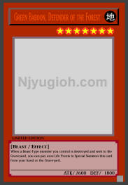 Green Baboon, Defender of the Forest EARTH / Beast / Level 7 / ATK 2600 / DEF 1800 When a Beast-Type monster you control is destroyed and sent to the Graveyard, you can pay 1000 Life Points to Special Summon this card from your hand or the Graveyard. ULTRA RARE |