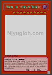 Exodia, the Legendary Defender DARK / Spellcaster / Level 10 / ATK ? / DEF ? Cannot be Special Summoned. You can Tribute 5 monsters to Tribute Summon (but not Set) this card. This card's ATK/DEF become the combined original ATK/DEF of the Tributed monsters. If this card Summoned this way destroys a DARK Fiend monster owned by your opponent, you win the Duel at the end of the Damage Step. PRISMATIC SECRET RARE |