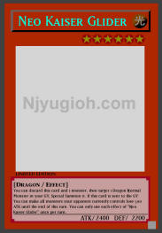 Neo Kaiser Glider LIGHT / Dragon / Level 6 / ATK 2400 / DEF 2200 You can discard this card and 1 monster, then target 1 Dragon Normal Monster in your GY; Special Summon it. If this card is sent to the GY: You can make all monsters your opponent currently controls lose 500 ATK until the end of this turn. You can only use each effect of "Neo Kaiser Glider" once per turn. PRISMATIC SECRET RARE |