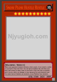 Snow Plow Hustle Rustle EARTH / Machine / Level 10 / ATK 2500 / DEF 3000 When your opponent's monster declares a direct attack, if you control a card(s) in your Spell & Trap Card Zone: You can Special Summon this card from your hand, then destroy as many cards in your Spell & Trap Card Zone as possible, and if you do, inflict 200 damage to your opponent for each destroyed card. You cannot Special Summon any monsters, except Machine-Type monsters. ULTRA RARE |