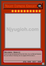 Night Express Knight EARTH / Machine / Level 10 / ATK 3000 / DEF 3000 Cannot be Special Summoned from the Deck. You can Normal Summon this card without Tributing, but its original ATK becomes 0. ULTRA RARE |