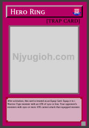 Hero Ring Normal Trap After activation, this card is treated as an Equip Card. Equip it to 1 Warrior-Type monster with an ATK of 1500 or less. Your opponent's monsters with 1900 or more ATK cannot attack that equipped monster. SUPER RARE |