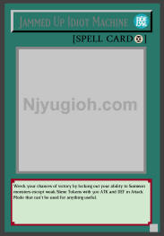 Jammed Up Idiot Machine Continuous Spell Wreck your chances of victory by locking out your ability to Summon monsters except weak Slime Tokens with 500 ATK and DEF in Attack Mode that can't be used for anything useful. RARE |
